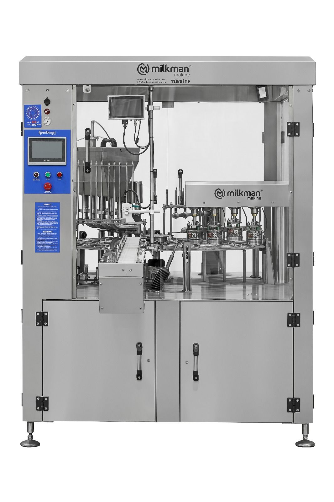 The ayran and yogurt milk filling machine is designed to accurately fill between 100-2000 grams, depending on the cup diameter. It ensures a hygienic and precise filling process, guaranteeing accurate portioning and clean packaging of dairy products.